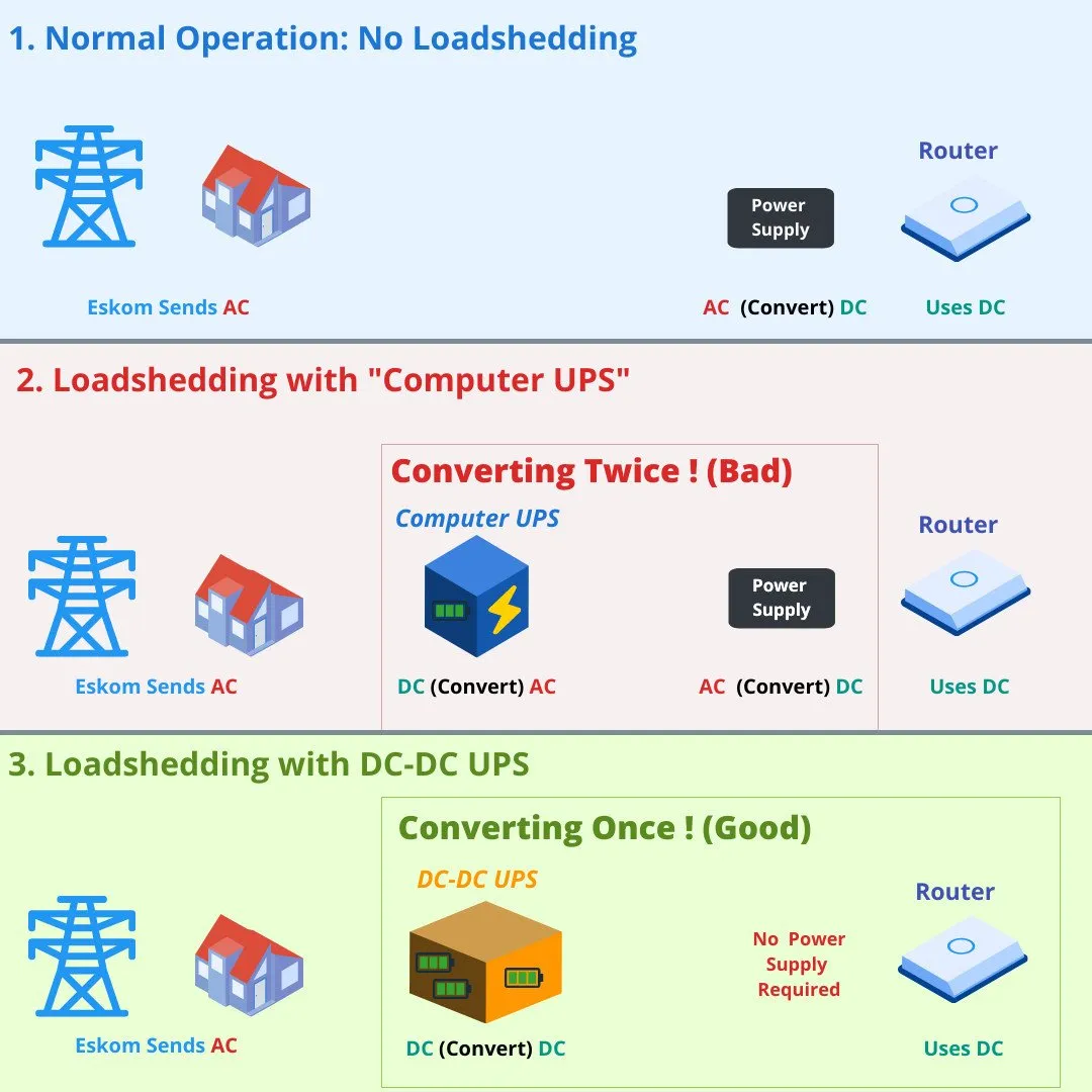 If you want to learn more about what not to buy or why the traditional computer UPS is not the best solution for South Africa's load shedding, then read on.