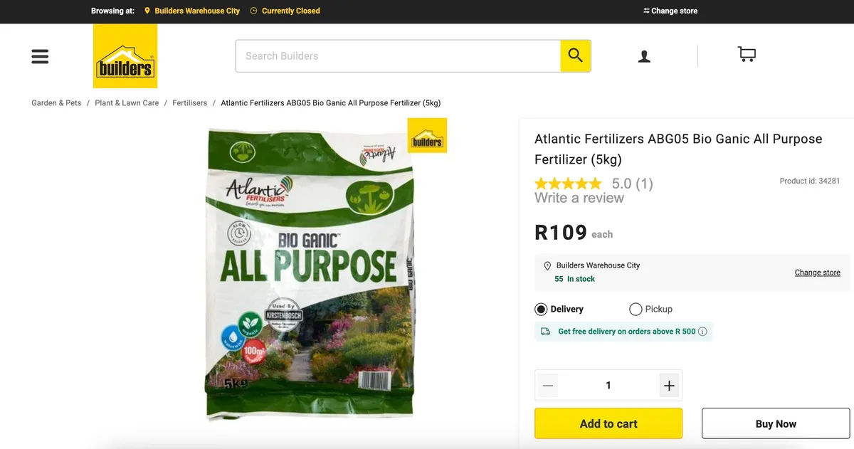 Takealot might not be your first choice of place to go and buy fertiliser for your garden, however, the reason they should potentially be on your list is because the delivery might be quicker than the speciality stores mentioned above - unless of course you choose to forego online shopping and walk directly into Stodels or Builders to buy your goods, of course.