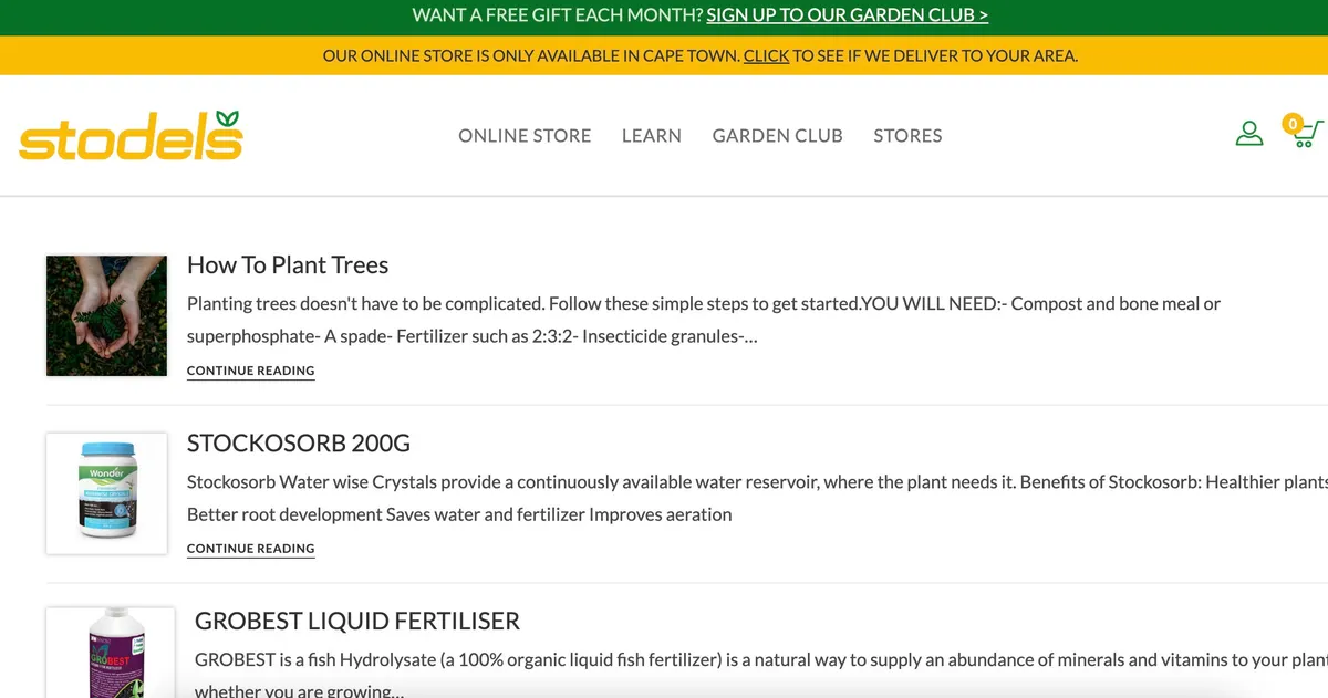 The Stodels website is unfortunately not great to navigate. You either have to go through all products and categories to find what you’re looking for one by one, as the search returns mixed results. Search results are a combination of articles and products, but not displayed in a way to easily see product or price so the process is quite cumbersome.