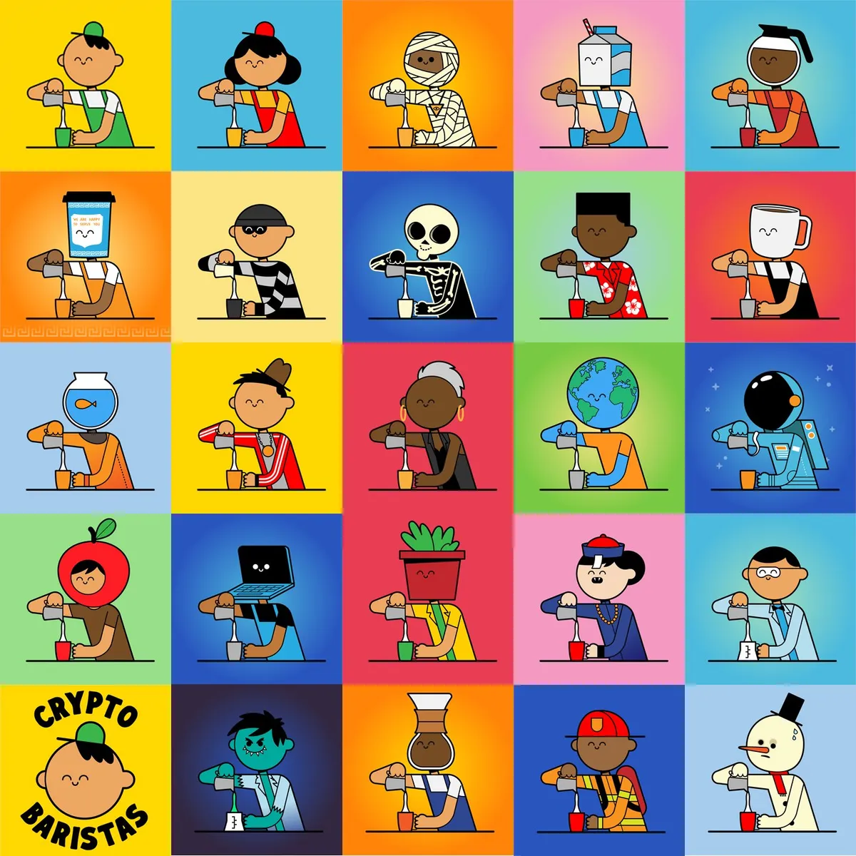 - Coffee - The Crypto Barista project. This is NFT meets real world meets Kickstarter. I thought this is a super clever way to bring awareness to a project with (hopefully) real life rewards when its crowdfunding is realised. The idea is that every NFT bought in the shop will include "caffeinated perks" for life which can then be used at future cafe spaces. Crypto Baristas is a collection of hand-drawn, unique characters pouring coffee available for purchase at Rarible, a blockchain platform, as NFTs. A total of 60 such characters, designed by illustrator Tony Bui and the Coffee Bros are on sale at the Crypto Barista website. The characters are categorised into three different categories on the basis of their rarity levels.You can also just buy the coffee with cash or crypto if you wanted it without the NFT.